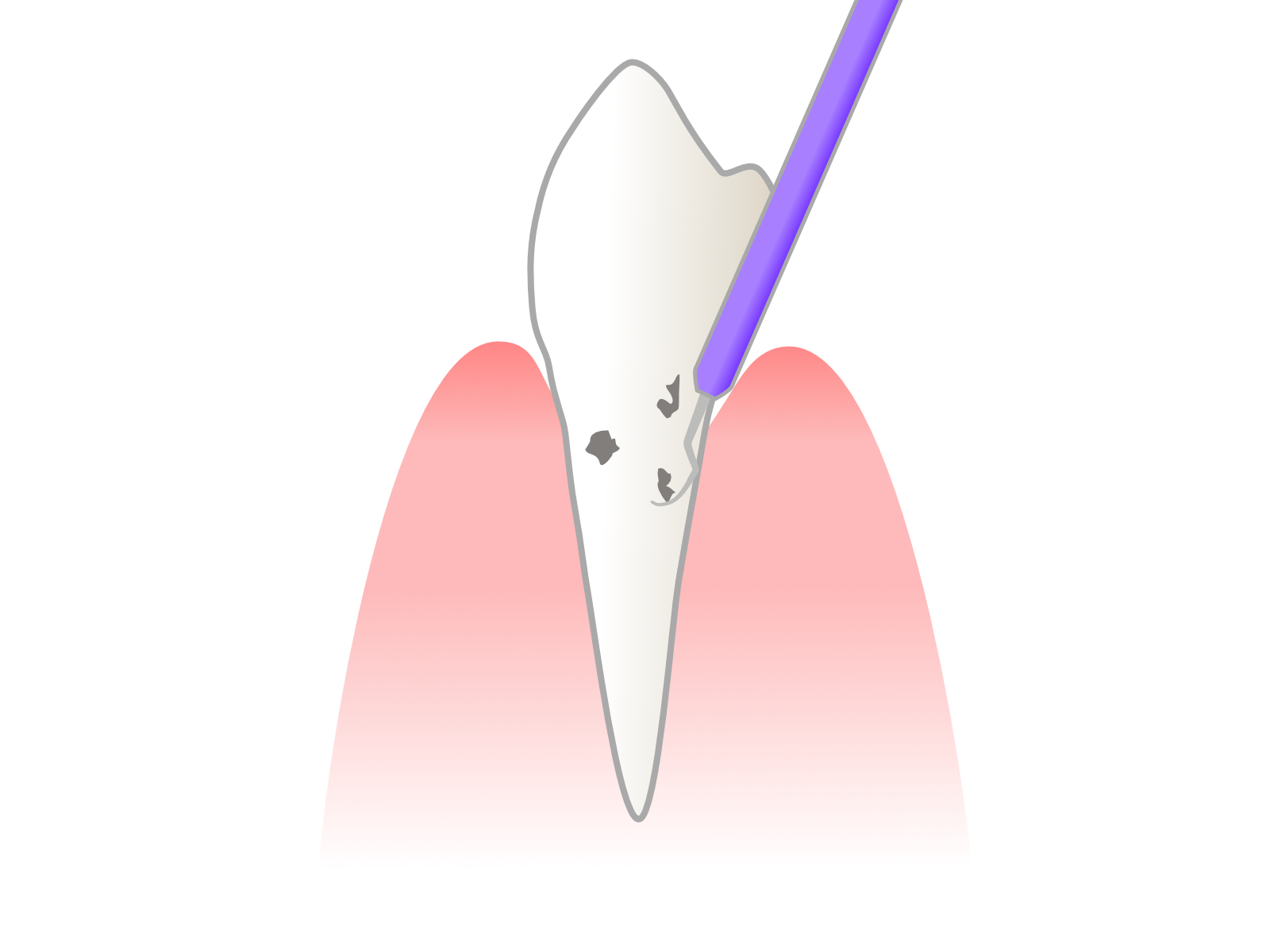 軽度の歯周病治療では、まず“原因をしっかり取り除くこと”が最も重要です。その中心となるのがスケーリング・ルートプレーニング(SRP)という治療です。SRPでは、超音波スケーラーなどの器具を使って、歯の表面や歯茎の中に付着した歯石、歯周病の原因となるプラーク(細菌のかたまり)を丁寧に除去していきます。